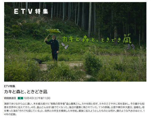絵本『にんげんばかり そばを たべるのは ずるいよ』に最後のエッセイを寄せ逝去された“長靴の哲学者”畠山重篤さん。10/4(土)夜11時、NHK・Eテレでドキュメンタリー「カキと森と、ときどき凪」を放送。森に木を植え、海を信じ、カキと共に生きた漁師。公害、震災、温暖化と向き合いながら自然との共生を探り続けた半世紀。海辺の書斎に残された最後の原稿に、何を託そうとしたのか。絵本の作者、孫の凪くんも朗読します。
